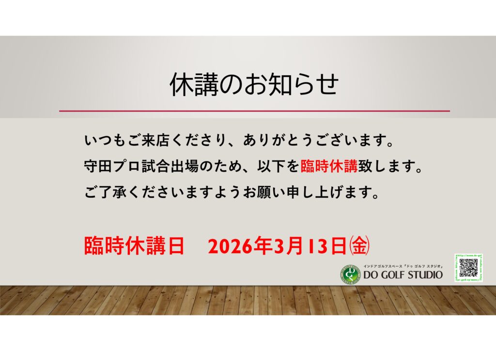 臨時休講の御案内 ホーム20263月 タグ: 休講日のお知らせ 2026年3月3日 0 投稿者 info@do-golf-studio.com 関連投稿 タグ: 休講日のお知らせ 年末年始の休講日のお知らせ 2025年12月15日 0 平素は格別のご高配を賜り厚く御礼申し上げます... すべて読む 投稿ナビゲーション 前の投稿次の投稿